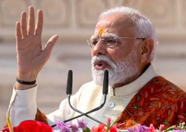 अयोध्या में श्रीराम जन्मभूमि मंदिर के शिखर पर आज धर्म ध्वजा भव्य तरीके से स्थापित कर दी गई. वैदिक मंत्रोच्चार के बीच यह ध्वजारोहण अभिजीत मुहूर्त में संपन्न हुआ. प्रधानमंत्री नरेंद्र मोदी ने इस पवित्र पल में हाथ जोड़कर भगवान श्रीराम को नमन किया, जिससे रामनगरी उत्सवमय माहौल में डूब गई. ध्वज को इलेक्ट्रिक सिस्टम से स्थापित किया गया.. राम मंदिर के स्वर्ण शिखर पर धर्म ध्वज की स्थापना मंदिर निर्माण की पूर्णता और सांस्कृतिक गौरव का प्रतीक माना जा रहा है. हजारों श्रद्धालु और साधु-संत इस क्षण के साक्षी बने. सुरक्षा के पुख्ता बंदोबस्त थे. ध्वजारोहण के बाद पीएम नरेंद्र मोदी ने मौजूद लोगों को संबोधित किया..