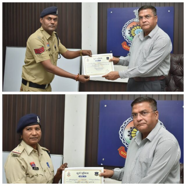 उक्त अभियान के दौरान आपराधिक प्रकरणों की उत्कृष्ट विवेचना, फरार आरोपियों की गिरफ्तारी एवं स्थायी वारण्ट तामील करने में उल्लेखनीय कार्य करने वाले कुल 69 अधिकारी/कर्मचारियों को पुलिस नियंत्रण कक्ष, सेक्टर-06 भिलाई में प्रशस्ति पत्र प्रदान कर सम्मानित किया गया।