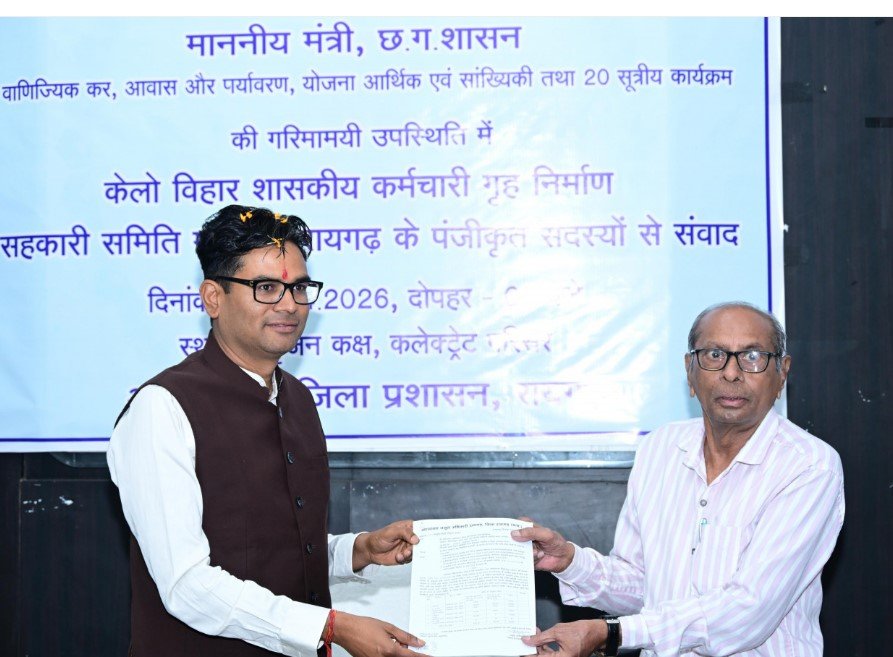 वित्त मंत्री एवं रायगढ़ विधायक श्री ओ.पी. चौधरी की उपस्थिति में कलेक्ट्रेट परिसर स्थित सृजन कक्ष में केलो विहार शासकीय कर्मचारी गृह निर्माण सहकारी समिति, रायगढ़ के पंजीकृत सदस्यों के साथ संवाद कार्यक्रम आयोजित किया गया। कार्यक्रम का आयोजन जिला प्रशासन रायगढ़ द्वारा किया गया।