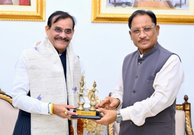 मुख्यमंत्री श्री विष्णु देव साय से आज राजधानी रायपुर स्थित मुख्यमंत्री निवास कार्यालय में लोकसभा सांसद श्री विष्णु दत्त शर्मा ने सौजन्य मुलाकात की। मुख्यमंत्री श्री साय ने श्री शर्मा का आत्मीय स्वागत करते हुए उन्हें शॉल एवं बस्तर आर्ट की आकर्षक प्रतिकृति भेंट कर सम्मानित किया। इस दौरान उनके बीच विभिन्न समसामयिक विषयों पर चर्चा हुई।